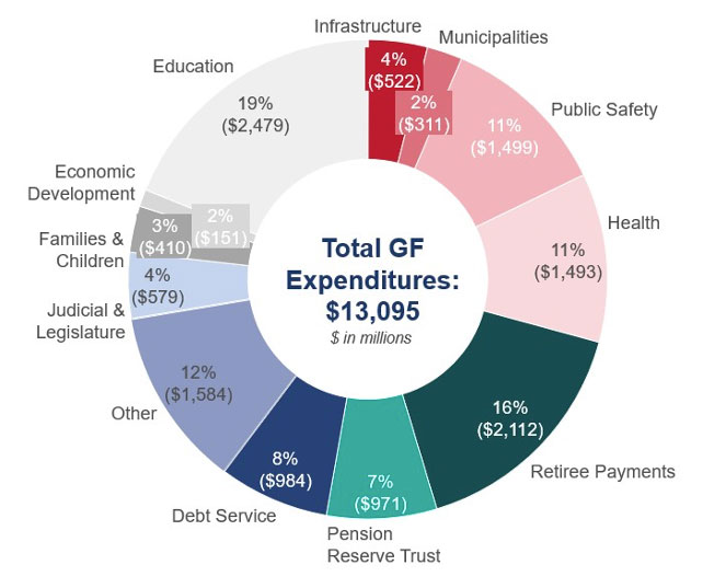 More than 64%, $8.6 billion, of the General Fund is dedicated to education, public safety, healthcare, and pension payments, reinforcing the government’s commitment to core services. The increase in spending is primarily allocated to targeted, non-recurring investments to support fiscal responsibility and long-term sustainability, rather than obligations that would create new ongoing government expenses.